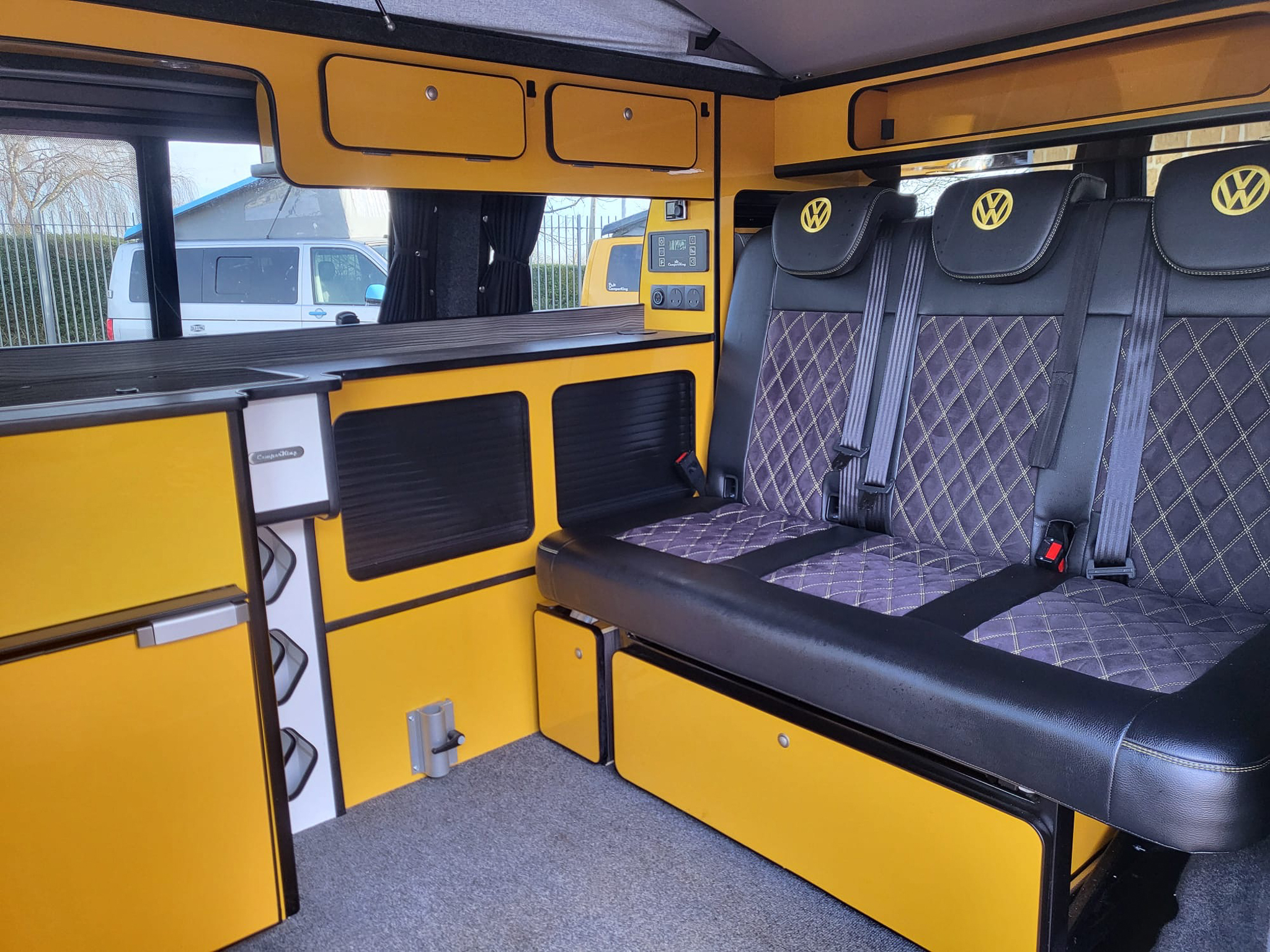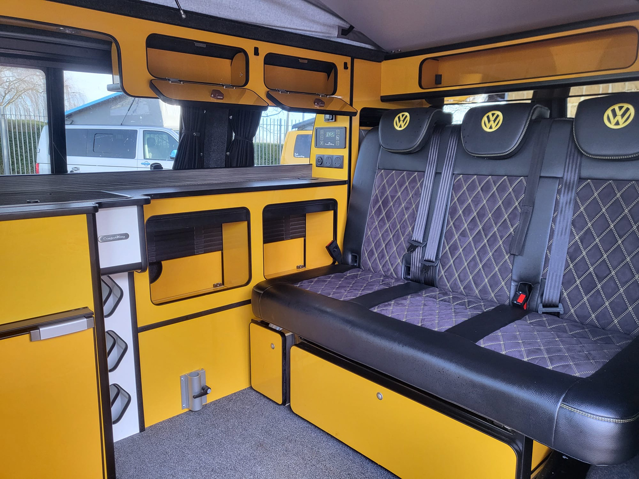 Upholstery:Vinyl Outers, Suede inners, Large double diamond stitch, Black