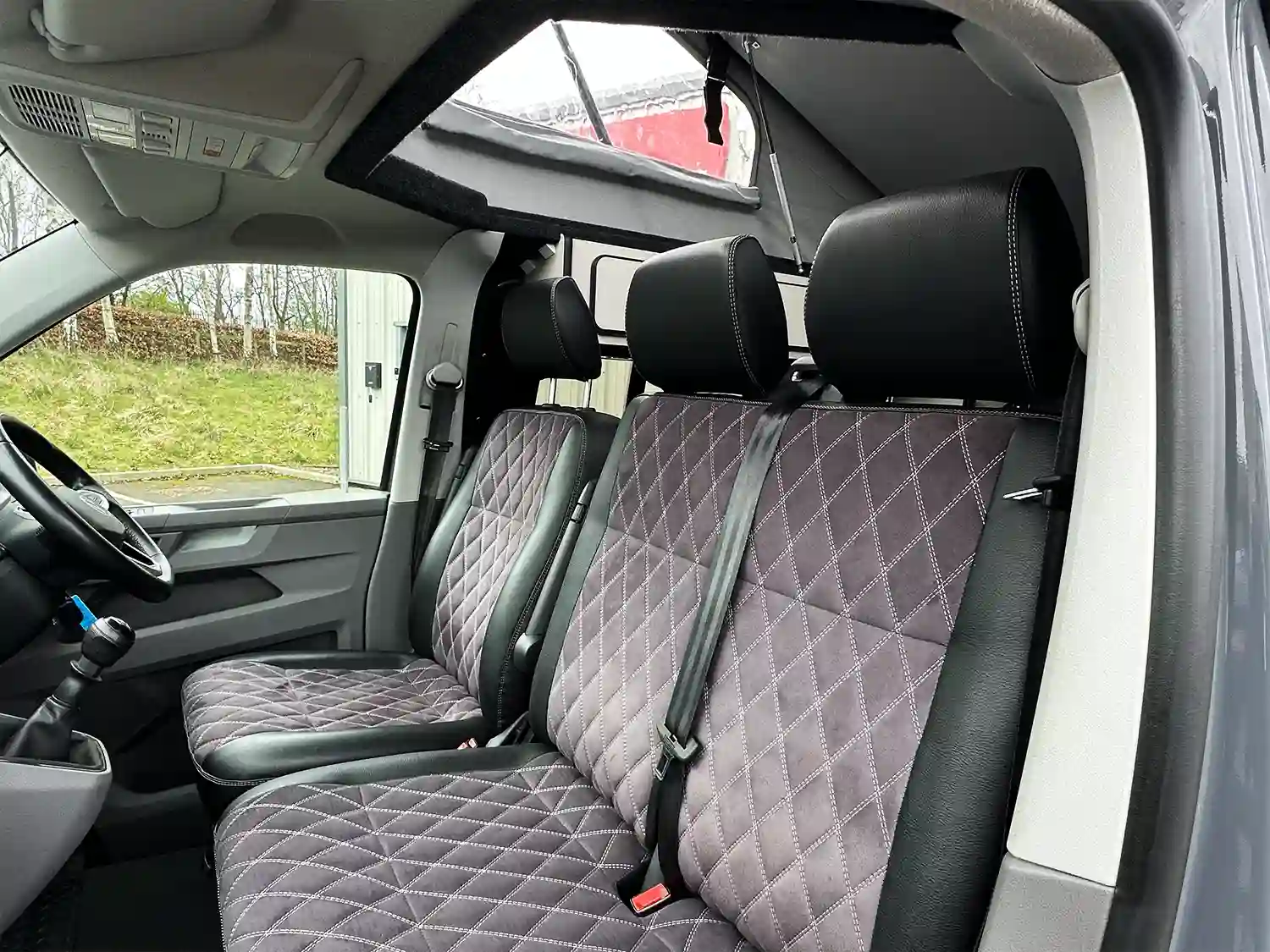 Upholstery:Upgrade alcantara upholstry with white stitching