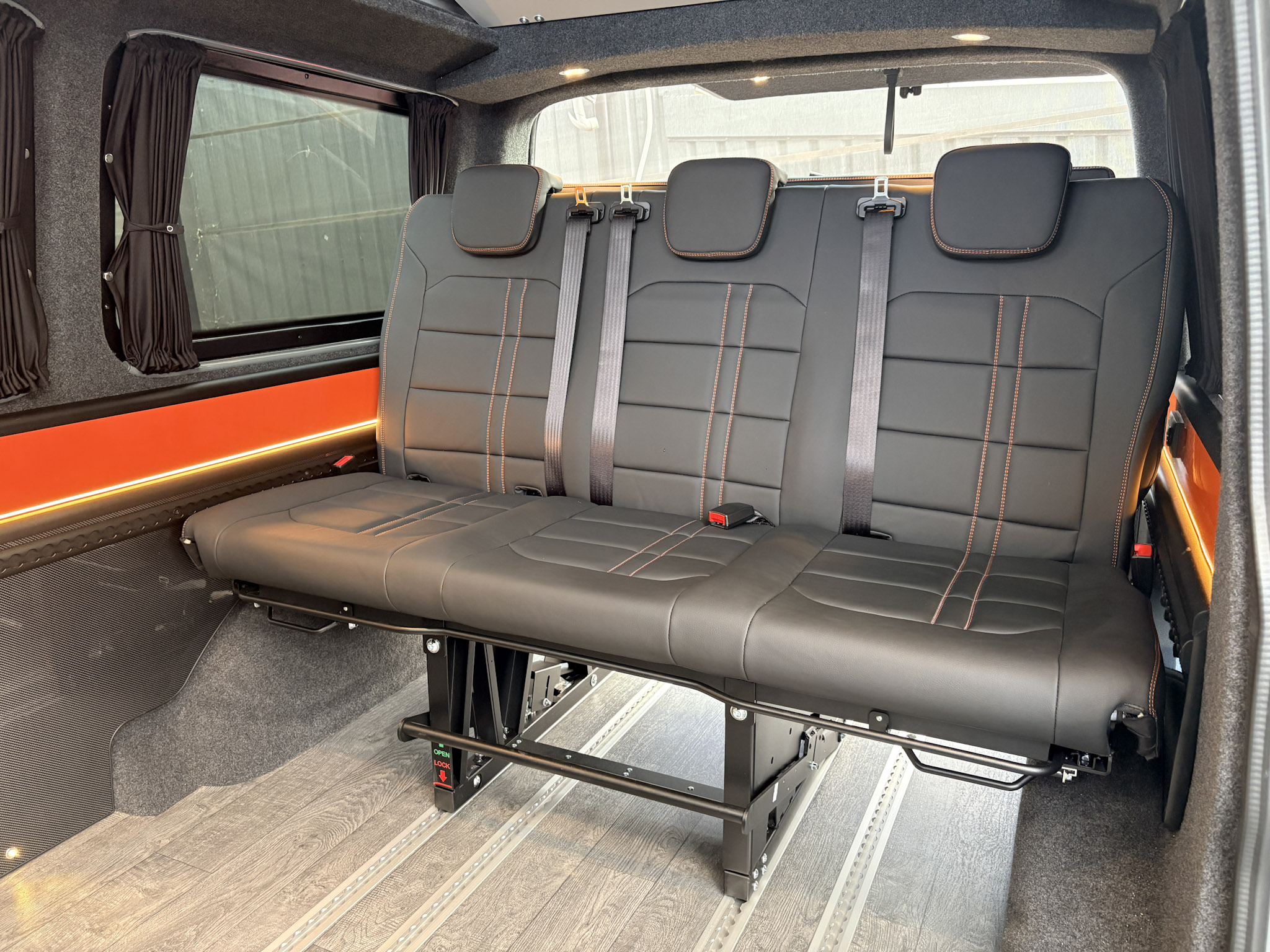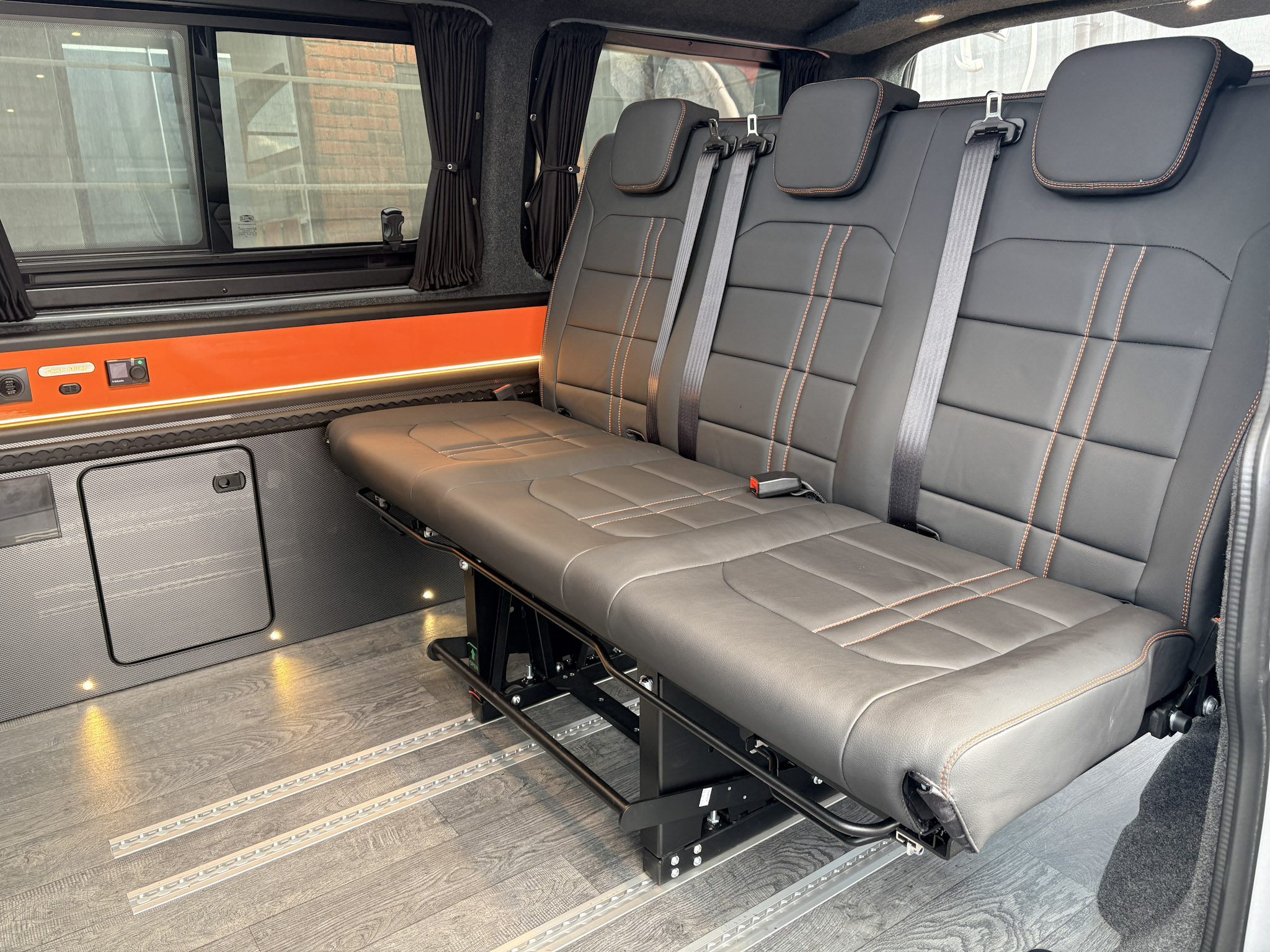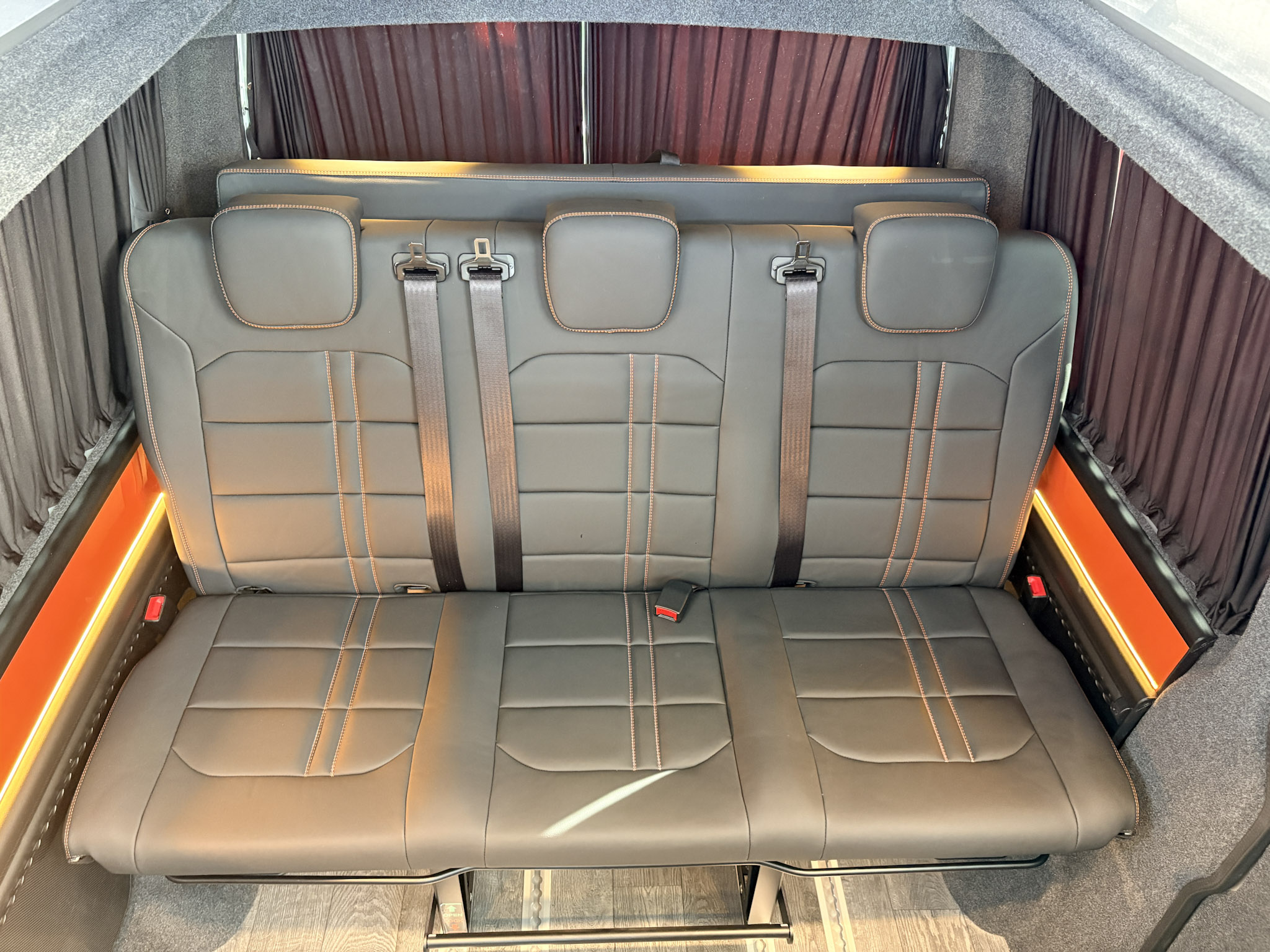 Upholstery:Geneva Valencia in Schwartz with Orange stitching