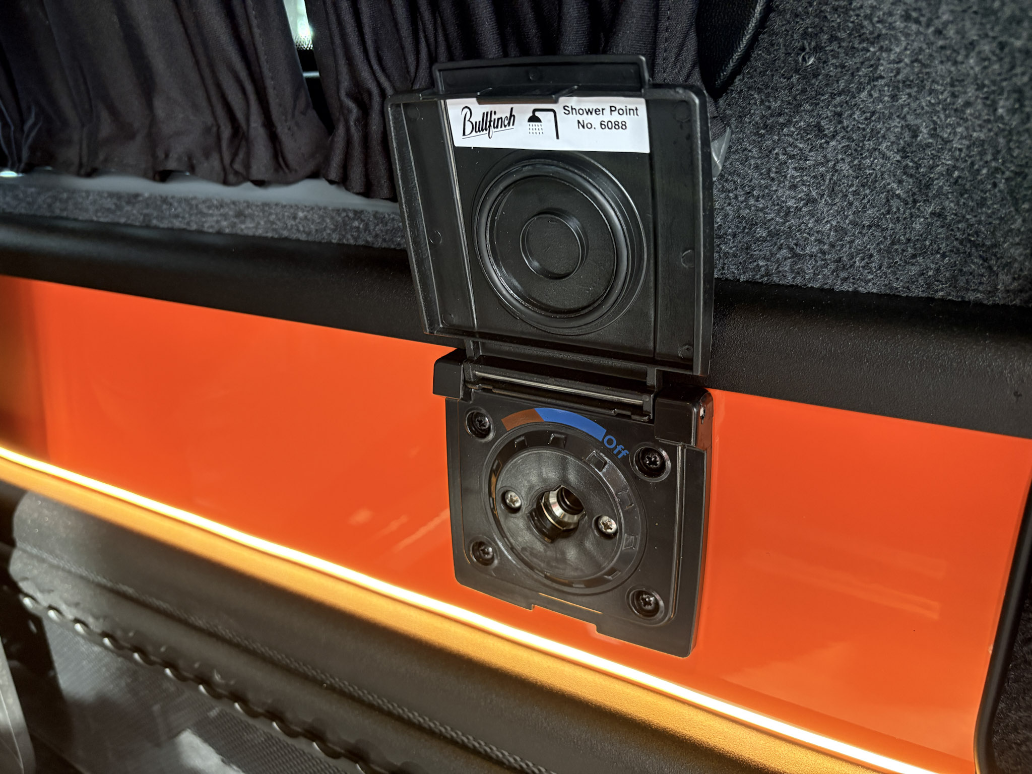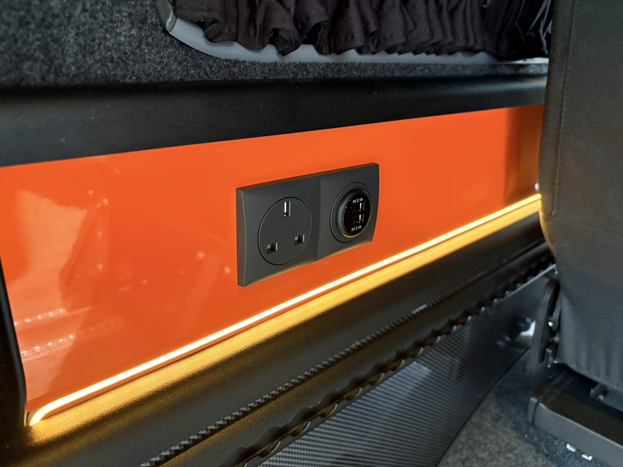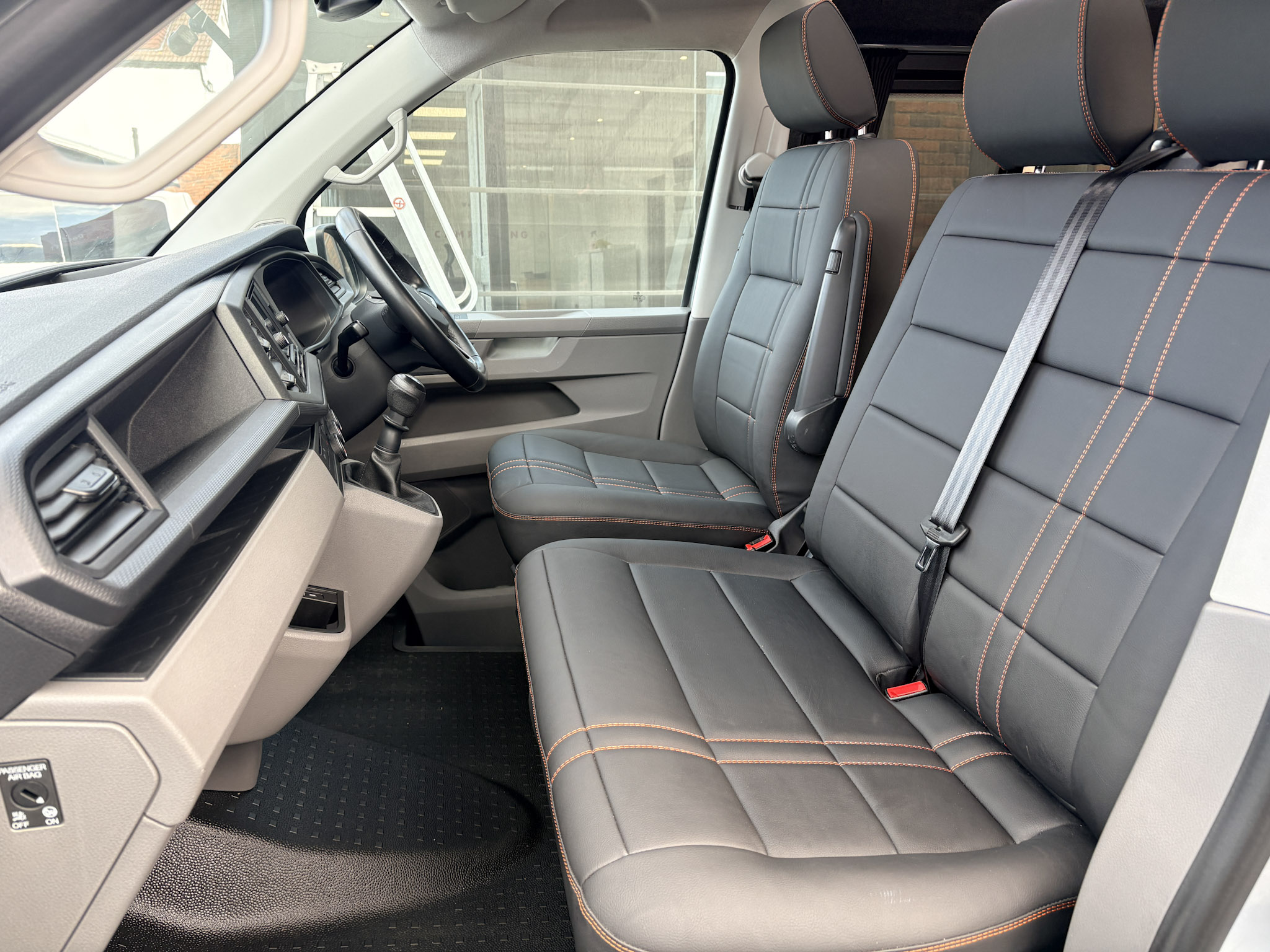 Upholstery:Geneva Valencia in Schwartz with Orange stitching