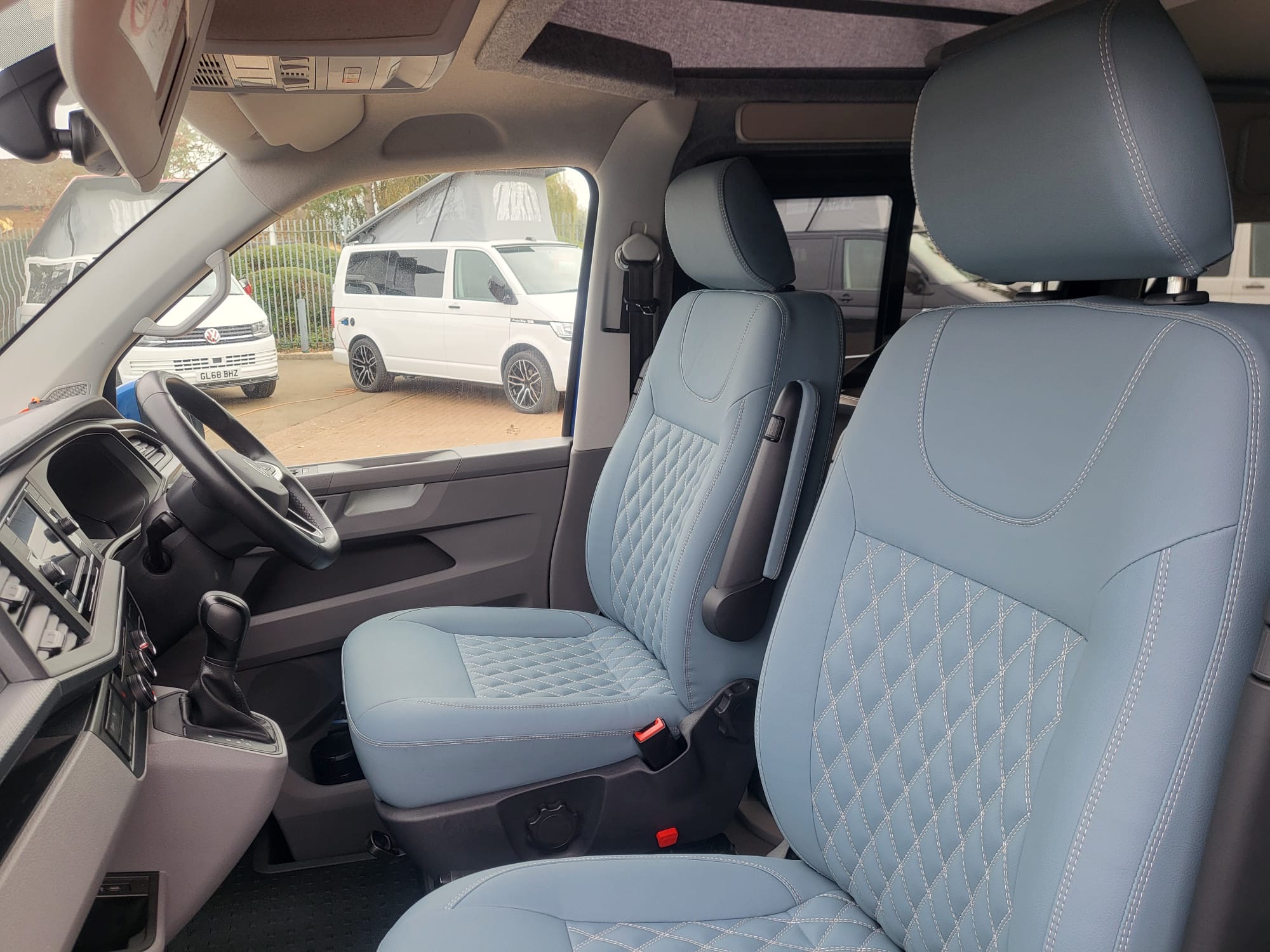 Upholstery:Overwatch Valencia in petrol with latte stitching