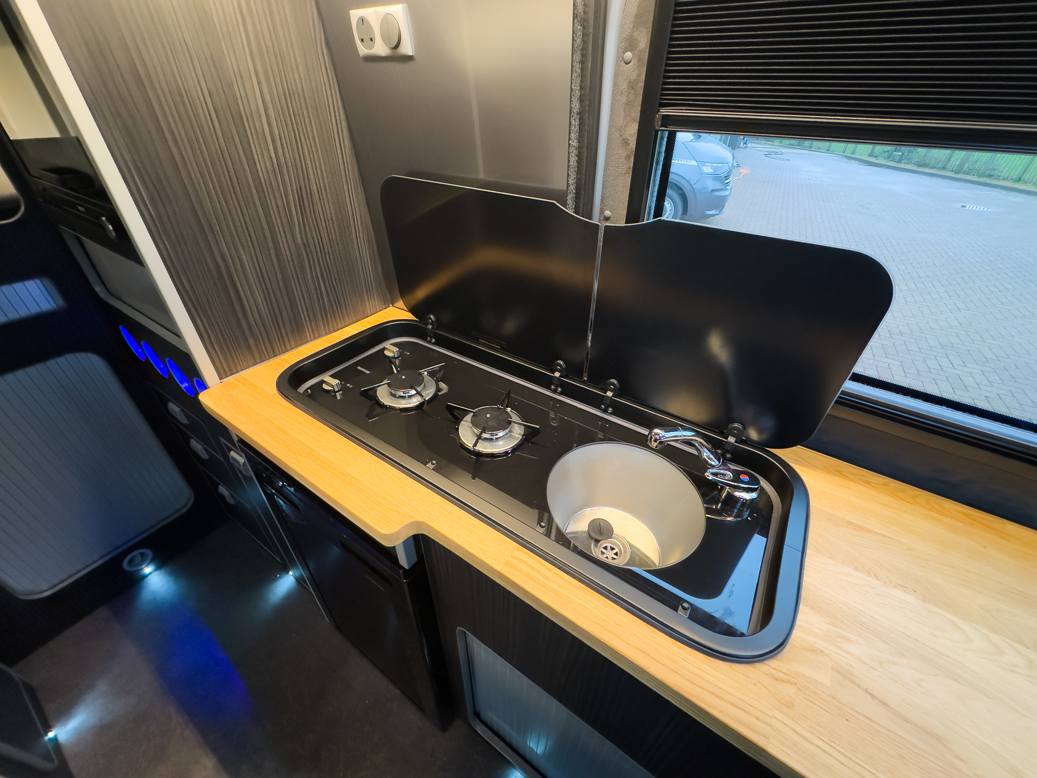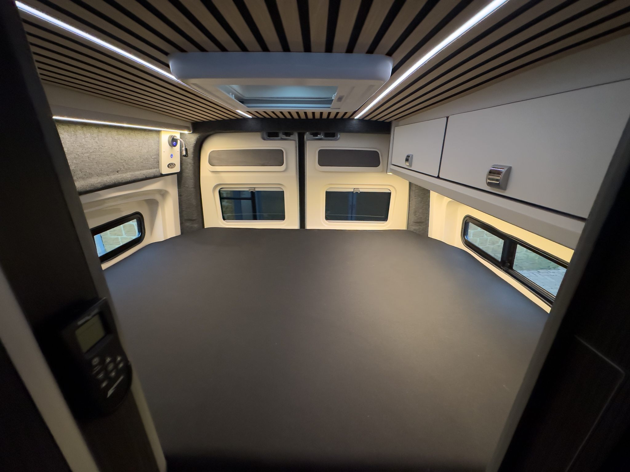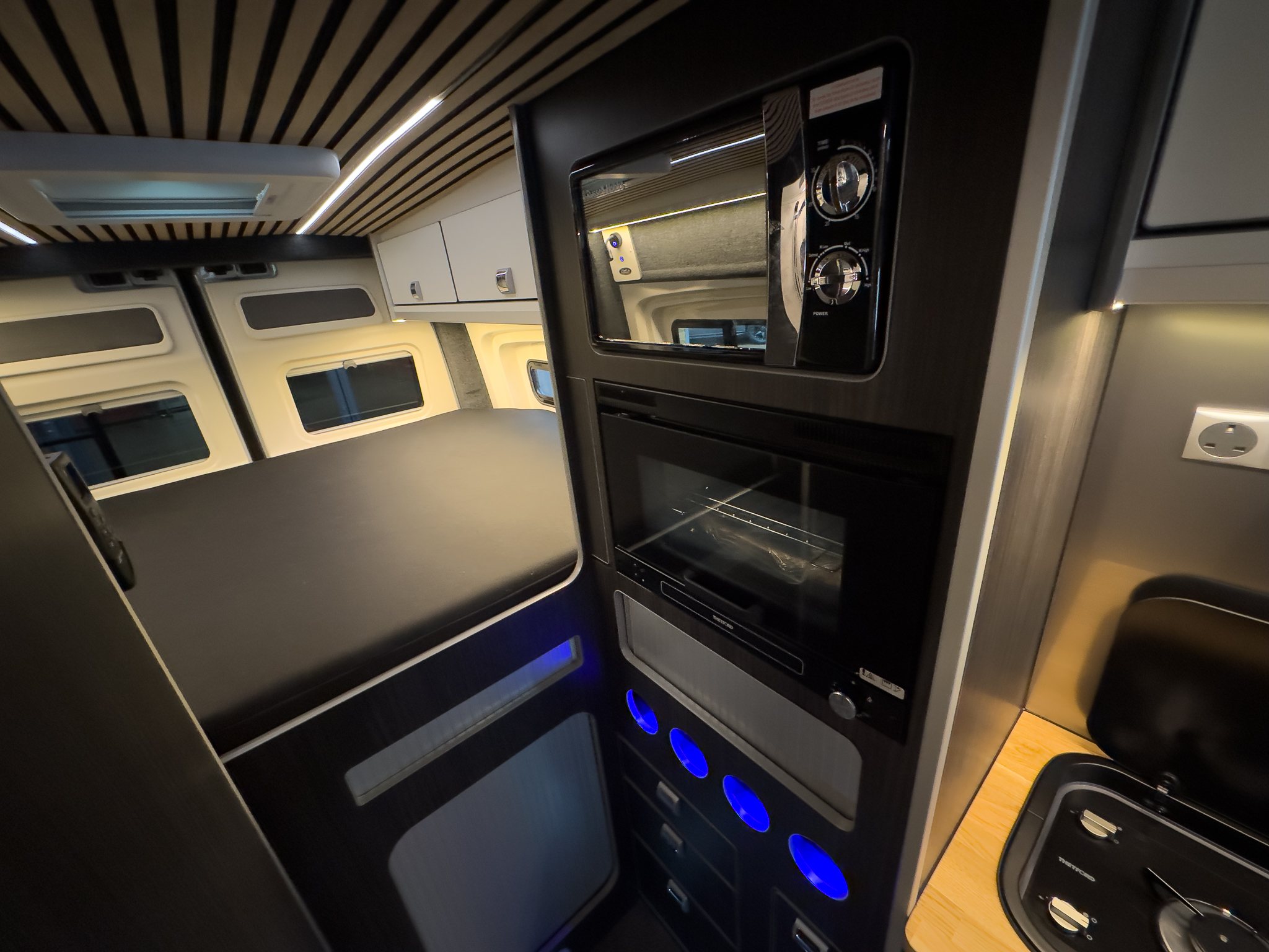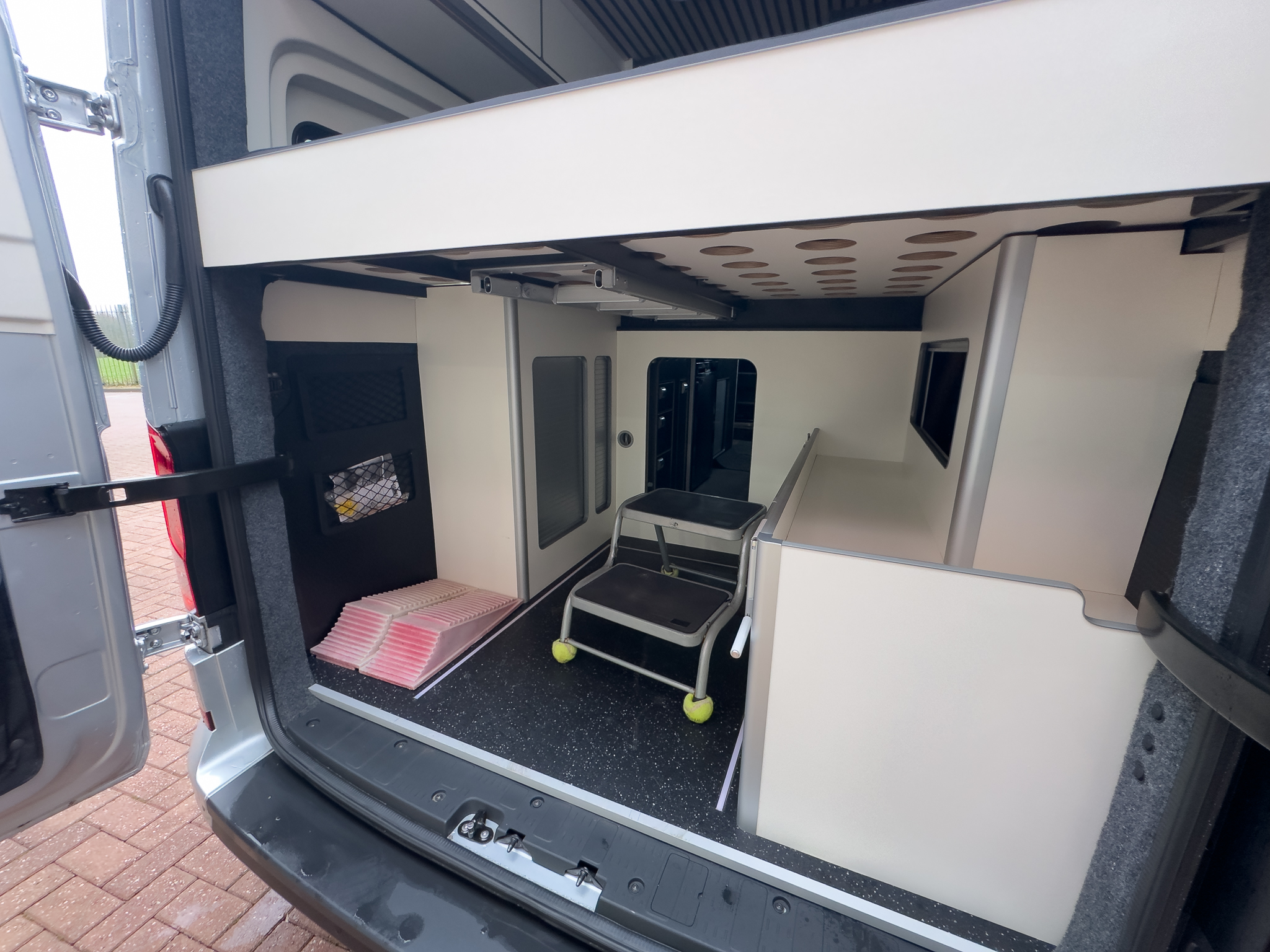 * FLAGSHIP “XP” MODEL – LIMITED EDITION STEALTH VERSION * QUANTOCK LEISURE & AUTOMOTIVE DEVELOPMENTS CONVERSION * PHOENIX CUSTOMS ROOF RACK, REAR LADDER & SPARE WHEEL CARRIER * LPG UNDER-SLUNG GAS SYSTEM WITH EXTERNAL BBQ POINT * FIAMMA F45s AWNING * MAXAIR SKYMAXX LX WITH REMOTE – LIVING AREA & SHOWER POD * THETFORD SINK & HOB, MICROWAVE, OVEN (20LTR), 80LTR FRIDGE INTEGRATION * SOLID OILED OAK BLOCK WORKTOPS, SOFT CLOSE DRAWERS & ILLUMINATED WINE RACK * RIB 860 BED SYSTEM – 5 PASSENGER TRAVEL SEATS, 4 BERTH LAYOUT * FULLY UPHOLSTERED MATCHING SEATS WITH STEALTH HEADRESTS * VICRON OFF-GRID SOLAR KIT – 300W SOLAR, 3000W 240V INVERTER * TRUMA HOT AIR & HOT WATER SYSTEM * BF GOODRICH K02 TYRES x5 * 8-SPEED AUTO GEARBOX – 177 BHP BI-TURBO ENGINE * METALLIC REFLEX SILVER PAINTWORK